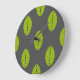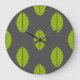Folhas verdes no design do relógio de cinza escuro.