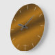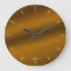 Este elegante relógio personalizável apresenta um design de fundo que replica a aparência de metal escovado em uma rica sombra de bronze. As horas são marcadas com linhas de luz, mas sem números para um visual elegante e mínimo. Adicione suas próprias imagens ou texto para um relógio personalizado, ou simplesmente deixe-o como está, para um relógio de ouro perfeito que vai passar por uma variedade de decorações.