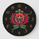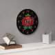 Flor de arte popular húngara em fundo preto. Relógio com marcadores simples para as posições numéricas.design de flores brilhantemente coloridas em húngaro contra fundo preto. Eu peguei um padrão tradicional de flor estilizada de um modelo de bordado vintage, então adicionei cores e comparei esse povo chamado de face de relógio Húngaro. Para aqueles que adoram a decoração do Velho Mundo. Um sotaque ousado.
