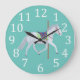 Estes relógios bonitos apresentam a minha pintura de um cavalo carrossel de cinza vestindo uma sela decorada com cenouras e um cobertor decorado com maçãs. A cor de fundo é um aqua verde e pode ser personalizada com qualquer cor da sua seleção. Há grandes números brancos no relógio para uma leitura fácil. Obrigado por comprar CherylsArt no Zazzle.