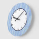 Grande relógio de cheques azul e branco de gingham