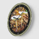 Delicar os cogumelos florestais em meio a camas-de-floresta marrom atinge acordes emocionais quentes neste relógio, números ligeiramente amarelos sobre fundo preto