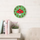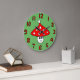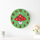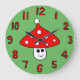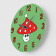 Um relógio com um cogumelo festivo e números vermelhos correspondentes.