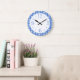 Diversão do relógio retronáutico em azul elegante e branco, grandes números brincalhões para a cozinha costeira.