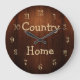 Relógio de decoração da parede da cozinha recém-criado com madeira rústica de campo, olhe o fundo impresso digitalmente na face do relógio junto com as palavras Country Home e as cores bonitas coordenadas números da face do relógio. Projetado para uma decoração caseira.