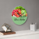 Relógios engraçados de parede da cozinha para a mãe desenhados com um gráfico colorido de fruta fresca e espaço de nomes que você pode personalizar online com o nome de sua mãe ou usar nossa design como mostrado. Faz um presente excelente para a mãe.