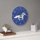 Relógio de decoração da parede temática do oeste do País desenhado com um desenho equestre equestre com padrão jean jean azul, juntamente com números de rosto do relógio. Ajustados bem com uma decoração da casa ocidental do país, casa de campo ou caverna de homem.