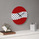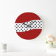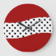 Relógio de parede moderno com combinação linda de cor vermelha, preta e branca e bolinhas bonito na face do relógio. Projetado para qualquer cozinha, quarto, sala ou dormitório. Criado para senhoras ou meninas e vamos você decora suas paredes com estilo.