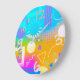Um relógio colorido de design moderno.