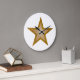 design moderno com ouro "brilhante" e estrela branca sobre fundo branco. Relógio com um design personalizável para você personalizar com seu próprio texto, imagens e ideias. Note que esta é uma imagem impressa criada com fotografias originais e técnicas digitais, que não brilha nem contém faíscas reais.
