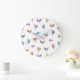 Relógio grande decorado num padrão de frango a cores aquáticas ilustrado por Harlequin Herd