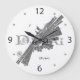 Dubai, maior cidade dos Emirados Árabes Unidos (EAU), na costa sudeste do Golfo Pérsico. Mapa da cidade em estilo monocromático em um relógio de parede branca. A área urbana de Dubai, com um traçado abstrato, enfatizando o centro urbano. A rede viária da cidade apela a entusiastas e visitantes em sua próxima viagem à cidade. | UrbanizaçãoCamisas