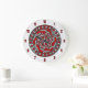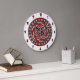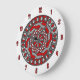Este design de círculo concêntrico contém camadas de padrões geométricos que se assemelham a engrenagens que você pode encontrar em máquinas modernas ou até alienígenas, em tons de vermelho e cinza.