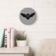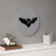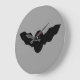 Este relógio fantástico apresenta um morcego vampiro assustador com olhos mau vermelhos e presas brancas agudas. Esta design divertida é perfeita para o Dia das Bruxas e deveria divertir as crianças e os adultos.