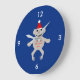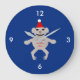 Este relógio espetacular mostra um desenho fofo de um urso Koala vestindo um chapéu festivo vermelho e branco. A Koala é cinza com olhos negros, nariz marrom e sorriso. Há uma dentro vermelha brilhante na barriga do Koala que diz "Feliz companheiro de Natal". Este design divertido é excelente para todos os australianos em casa e em todo o mundo.