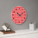 Um relógio de parede com números pretos no estilo manuscrito e um padrão de xadrez vermelho e branco do país retrorreflector com tiras espessas e finas sobrepostas. Os números podem ser removidos para um relógio simples. Clique em Personalizar para alterar elementos, cores de fundo e muito mais.