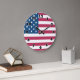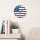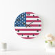 Grande relógio de parede com bandeira americana. Estrelas e listras do relógio da cozinha. Adicione seu próprio texto.