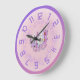 Grande Relógio de paredes florais, roxo e cor-de-rosa