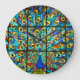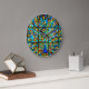 Cores vibrantes mantêm o tempo neste relógio de pavão de vidro manchado.