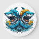 Design divertido, mostrando dois tubarões prontos para a próxima partida de polo d'água. Vamos! Presente ideal.