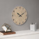 Este relógio apresenta uma bela arte de fundo que representa o curvo e o grão da velha madeira desbotada. As horas são marcadas em números de cinzas escuras em uma fonte de script amigável. Este relógio é personalizável, portanto você pode alterar a fonte, remover os números, adicionar seu próprio texto ou fazer qualquer outra alteração que desejar para um relógio exclusivo.