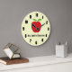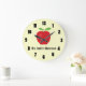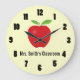 Este relógio tem um fundo amarelo claro com um gráfico de uma maçã no topo e uma sala para o texto abaixo daquela maçã. O texto mostrado aqui é "Sala de aula da Sra. Smith". O relógio pode ser personalizado para ajustado das suas necessidades. Isso daria um presente de excelente para um professor.