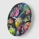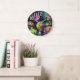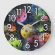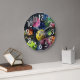 Este relógio artístico tem um design de bolas de picles de várias cores com grandes números brancos esboçados. Faz um presente original para qualquer amante de piquete.