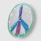 Este relógio tem um sinal de paz no meio dele.