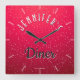 Adicione este relógio super divertido à sua cozinha, bar ou restaurante! Ele apresenta um fundo vermelho brilhante, com pequenas bolhas ascensões, como um copo de refrigerante de cereja e diz "Diner" (Seu Nome) em fontes retrorreflectoras. Super divertida e colorida. Também pode ser personalizado! Basta digitar no campo de nome para adicionar seu nome. Você também pode mudar o texto do "Diner" para outra coisa.