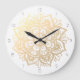 Um belo relógio de parede com uma flor de mandala desenhada à mão em tom metálico dourado. Perfeito para decorar um ioga ou um espaço de meditação. Ou um presente para alguém que ama mandalas e tons de ouro.