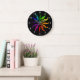 As cores padrão de uma roda colorida são representadas em folhas estilizadas que alcançam os algarismos na face do relógio preto. presente de Excelente para o artista visual. ***Parte do conjunto coordenado - BKM2c.