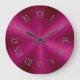 Grande Relógio Metálico Vermelho rosa com Números Romanos