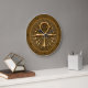 Em um fundo marrom, um tanto barulhento, este design de relógio mostra um ornamento antigo egípcio decorado com padrões circulares, um grande e um menor, de bastões ouros, ligados um ao outro. Bem no meio do ornamento, o antigo símbolo Egípcio para a vida, conhecido como "ANKH". A borda tem um ouro brilhando ao seu redor, assim como os números negros e antigos da hora da hierarquia egípcia.