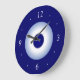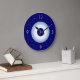 Um simples relógio de cozinha azul e branco.Este relógio é uma tendência simplista e disponível em formas quadradas e redondas.