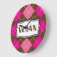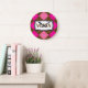 Vegan wall clock com design de padrão de argtilo rosa. Vegan home decor e presentes.