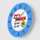 Este relógio da cozinha diz Pop Diner bom grub em letras vermelhas e azuis retroradas com um hambúrguer em amarelo. Os números são pretos em uma face externa azul. Um tema de arte de publicidade de restaurantes retrógrado para você ou seu cozinheiro de encomendas curtas favorito. Clique em Personalizar para alterar as cores de fundo e muito mais.