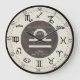 Zodiac Clocks de Terri Meyer "A Sign of the Time" Combinando astrologia e função, este relógio foi projetado a partir dos símbolos universais de astrologia do zodíaco. Os doze símbolos correspondentes ao mês de nascimento rodeiam o perímetro do relógio em vez de números para indicar a hora. O traço mais simpático do sinal astrológico é postado no centro do relógio com a faixa de nascença e símbolo universal. Este relógio mostra o Sinal de Libra. Este relógio foi projetado pelo artista Terri Meyer, para lembrá-lo que você tem características únicas baseadas no seu sinal de nascimento. Reforçar os bons e trabalhar para eliminar os fracos.