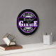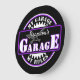 Lindo relógio de arte retrô contemporâneo com roxo brilhante, e roteiro de tipografia branca em fundo preto. Com espaço para personalizar ou personalizar com um nome e texto de sua escolha. Este design de hipster branco é feito para o homem da moda que tem uma mancaverna, ou um espaço de garagem no porão onde amigos e família podem ser entretidos, jogar pôquer, hóquei no ar, assistir filmes e jogos de futebol, e muito mais.