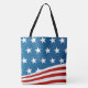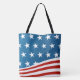 Este na moda grande saco de totes bonitinho é mostrado em estrelas patrióticas e impressão de listras e tem tiras pretas. Personalize este item ou comprar como está.