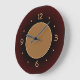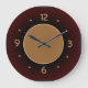 Um relógio castanho vermelho clássico com um centro de círculo grande que alto.Este relógio de parede moderno tem algarismos laranja-limão para combinar.Perfeito para a sua cozinha, como um presente de inauguração de casa ou qualquer ocasião especial.