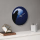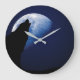 Sombra de um lobo uivando na lua. Tudo num fundo azul escuro.