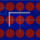 Grandes bolinhas vermelhas no tecido geométrico