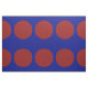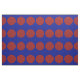O tecido geométrico à moda caracteriza um teste padrão corajoso de grandes bolinhas vermelhas em um fundo azul.