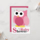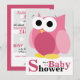 Convites de chuveiro para bebês de coruja lateral branca com uma grande coruja rosa ilustrada na frente e os detalhes do chá no verso. Outros produtos correspondentes disponíveis mediante pedido.