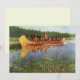 Grandes Exploradores (1905), de Frederick Remington, é uma pintura ocidental americana de arte fina vintage com Radisson e Groseilliers. Homens da fronteira, exploradores e caçadores de peles do norte com índios nativos americanos em uma canoa passando por plantas naturais de juncos e folhas de lírio em um rio calmo.