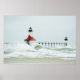 Ondas enormes atingiram o farol no píer norte na Rua Joseph, Michigan. Ventos e ondas elevados foram causados pela supertempestade Sandy em 10-30-2012. Direitos autorais de imagem de farol Constance McGuire 2012.