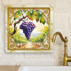 Tile featuring a watercolor painting of grapes in a vineyard framed by a classic gold and marble design. Beautiful for a wine lover.