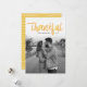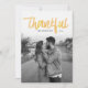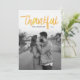 Envie um cartão com fotos de Ação de Graças na moda com "Obrigado" em uma fonte de script com letra manuscrita, estilo dourado de aquarela e espaços reservados para sua foto e texto personalizados.