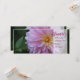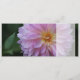 Grattiskort med närbild på en nyutslagen rosa Dahlia-blomma, glittrande med vattendroppar. På framsidan finns två texter: 'Grattis' och 'Önskar dig all lycka idag liksom alla dagar'. Homens, kan själv bestämma vad som skall stå på på kortet helt genom att skriva över exempeltexterna i rutornt höger. På baksidan finns inga färdiga texter, avsändaren kan skriva sitt eget name med penna. Kuvert medföljer.