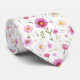 Linda gravata com um padrão impressionante representando flores coloridas de verão em tons de branco, rosa, vermelho e verde